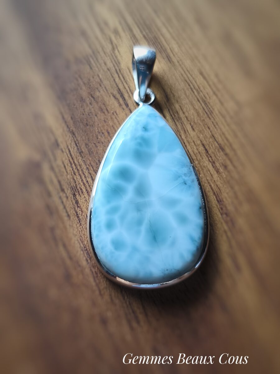 Le Larimar est une sublime pierre bleutée qui recèle une part de mystère. On la trouve essentiellement en République Dominicaine où elle a été découverte assez il n’y a pas si longtemps.