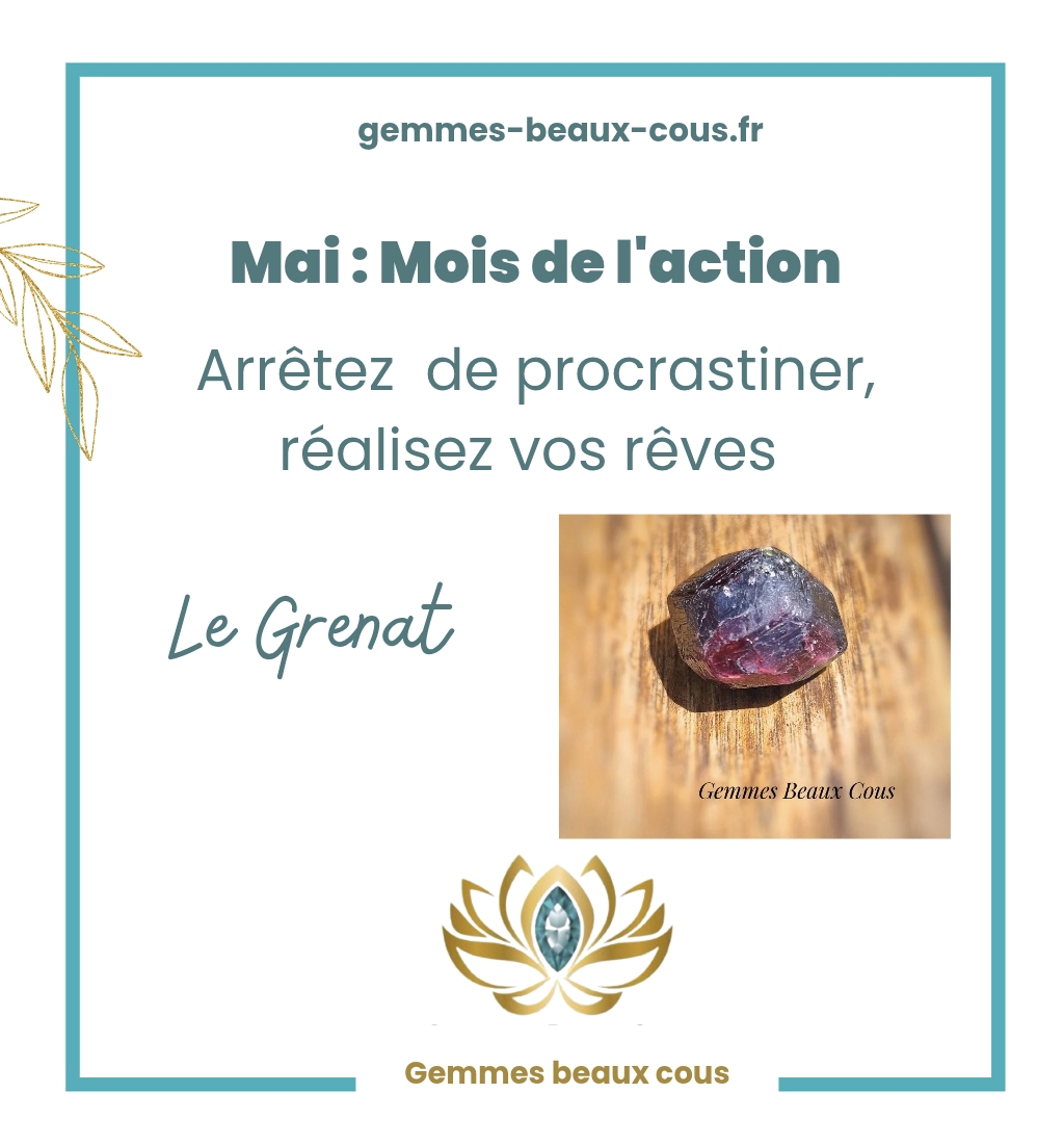 En effet, c’est le moment d’arrêter de procrastiner et de passer à l’action pour réaliser vos projets. Cette belle pierre rouge vous soutient et vous insuffle la force d’accomplir vos rêves. Plus d’infos sur l’article Le Grenat.
